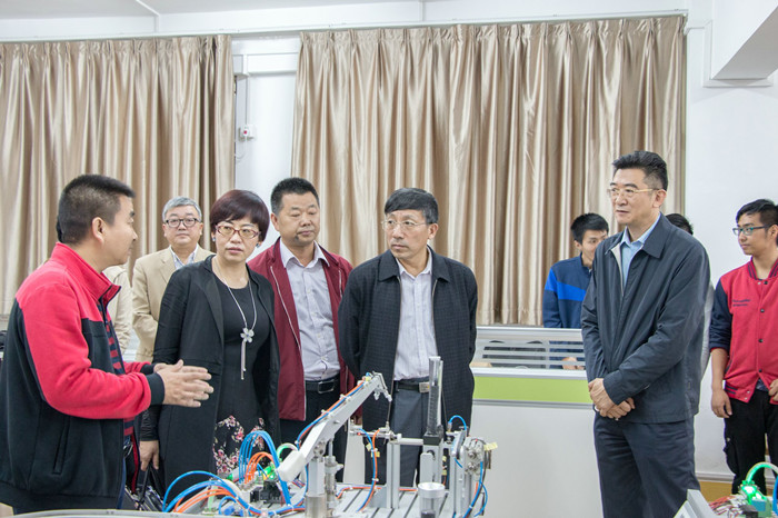 在我校校长彭永宏,党委副书记兼纪委书记李韶春,校办负责人等的陪同下,赵康巡视员一行先后参观了我校信息技术创新中心、智能检测与自动化装置实验室、大数据协同创新中心、旭日广东服装学院的工艺实验室、力克服装数字化模拟实验室、T恤协同创新中心等场所,相关二级学院负责人分别介绍了实验室运行及管理、专业建设、研发团队、学生参赛及成果等方面的情况,并对赵康巡视员提出的问题一一进行了解答。