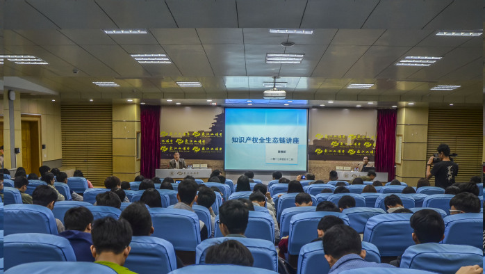 唐教授从今年4月26日第十七个世界知识产权日切入主题,从知识产权生态链这个角度对知识产权制度及其生态链,知识产权实质内容、外延、战略内容,申请知识产权的目的及申请策略和技巧,知识产权与创新和品牌的关系等进行了讲述。在谈到知识产权制度时,唐教授谈到,知识产权制度实际上是一个支点,当世界需要人类智慧这盏灯点亮自己的时候,知识产权制度就是支撑这盏灯的支点。当谈到知识产权与创新的关系时,他指出,知识产权是体现知识经济和科学技术实力以及企业竞争力的主要载体,也是知识经济和技术实力的形成的重要保障和动力,更是企业化蝶为蛹的密码。在世界未来的竞争中,知识经济和科学技术是核心。当前中国经济正处在革命攻坚的关键期,创新创业充满了未知数,必须建立一种支持创新、宽容失败、建立容错纠错机制,而知识产权正是提升新品质的重要前提和保障。