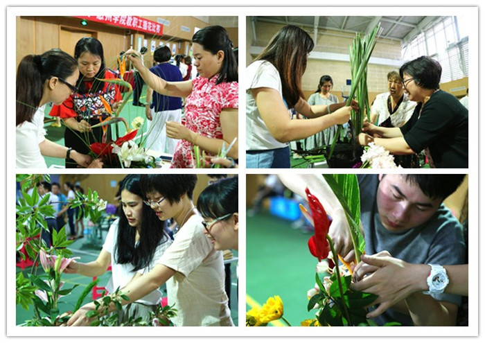 本网讯 5月24日下午,金山湖体育馆内鲜花醉人、花香弥漫,惠州学院2017年教职工插花比赛圆满举行,来自23个分工会组成的18支队伍汇聚一堂,共同感受插花艺术的魅力!