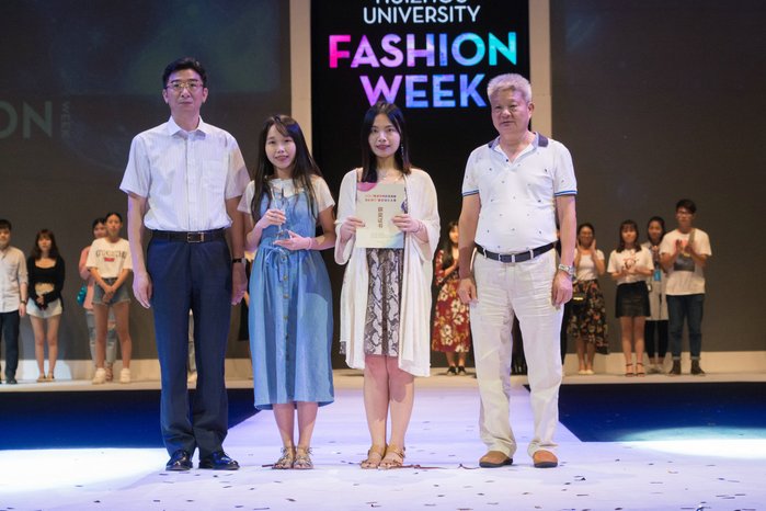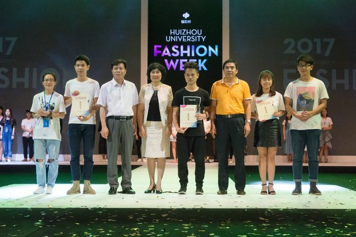 本次大赛由惠州学院主办、旭日广东服装学院承办,惠州市福利彩票发行中心协办,所有参赛作品均由我校旭日广东服装学院2017届毕业生自主设计并制作,分休闲、创意、礼服、针织四个系列。经过时装周四场激烈角逐后,共有20组作品晋级亮相本次决赛现场, 共享时装盛宴,喜迎端午佳节。广东工业大学教授、高级服装设计师孙恩乐女士,河北省邢台职业技术学院教授、国家首批鞋类高级设计师陈念慧先生,香港凯撒天娇集团副主席、行政总裁郑斯灿先生,真维斯服饰(中国)有限公司商品开发部总监黄国东先生,香港制衣业训练局设计师刘绮雯女士,汕头市创基时尚股份有限公司SN品牌设计总监曾少莹女士,深圳市丽扬时尚有限公司董事长庄伟宏先生等来自境内外兄弟院校、知名服装企业的专家及杰出校友代表应邀担任本次大赛评委。