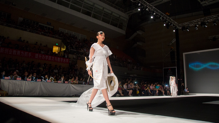 极富想象力和创造力的毕业生设计师围绕大赛主题“FRESH”,以舒适的面料、适体的剪裁、适合的轮廓板型,尽情诠释自己的态度、生活及梦想。设计作品时尚与朝气完美结合,融合潮流又不失舒适感。作品《Mystery Grey》采用大廓型展现建筑线条,高级灰与白色完美融合,再配以亮橙配饰点缀,衬托出女性的优雅;作品《AKIRA的童话故事》灵感来自日本的自由插画师Akira Kusaka的一系列插画,通过运用古老手工艺术“编织”表现森林、蓝天、白云、溪流,并通过刺绣手法来增加肌理感,色彩上运用蓝粉绿橙等不同的色调来表现不同的童话故事不同的感觉;作品《那抹绿》以森林的绿色与大地色为主色调,不规则的服装款式打破规矩的生活方式,寓意放飞自我,飘逸的流苏和系带设计为简约的服装起到画龙点睛的作用;作品《C-Street》采用波普纹样作为印花的设计元素,充分了利用了黑白元素和纷繁的波普图案,使整体风格简约而不简单;作品《赤》运用红、白两色的巧妙结合,设计出具有现代感的时尚功能性礼服,表现出一种经过磨砺之后的锻造之美!20组参赛作品展示结束后,旭日广东服装学院内衣设计团队展出了他们的九组最新内衣作品,魅惑全场。经过一番激烈的角逐,作品《Mystery Grey》最终获得金奖,《重生》和《AKIRA的童话故事》夺得银奖,《织音》、《亦墨》、《Linear》获得铜奖。《每一个深夜的晚安》 等14个作品获得优秀奖。