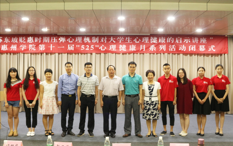 本网讯 6月6日下午,《苏东坡贬惠时期压弹心理机制对大学生心理健康的启示》讲座暨惠州学院第十一届"5.25"心理健康月闭幕式在图书馆报告厅举行。校党委副书记赵日兴,学生处、校团委、教育科学学院以及心理健康教育与咨询中心负责人出席相关活动。