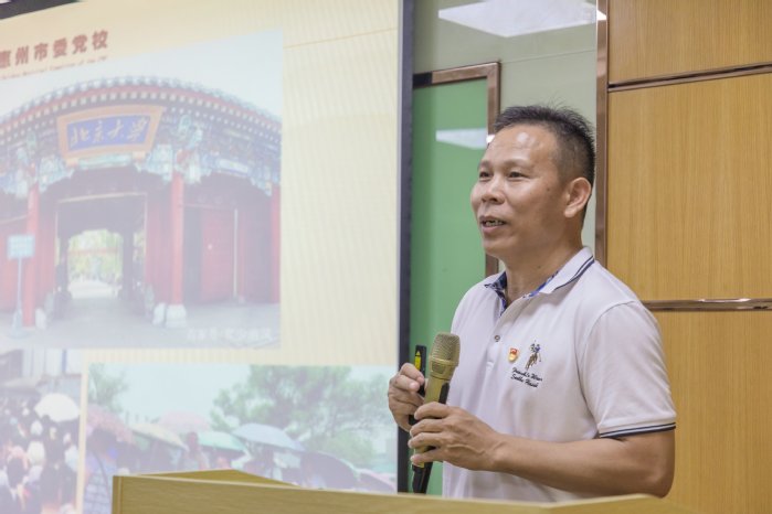 本网讯 7月6日上午,首期中青年骨干培训班专题党课学习活动在继续教育学院二楼培训室举行。惠州市委党校副校长邱国耀应邀为全体学员作了一场题为“理论学习与党性修养”的主题讲座。