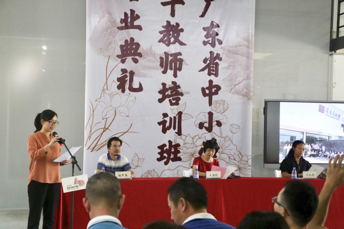 本网讯 9月21日下午,2019年广东省中小学书法骨干教师培训班结业典礼在我校惠大美术馆举行。继续教育学院负责人、美术与设计学院党政负责人、本次培训班班主任以及全体学员参加了结业典礼。