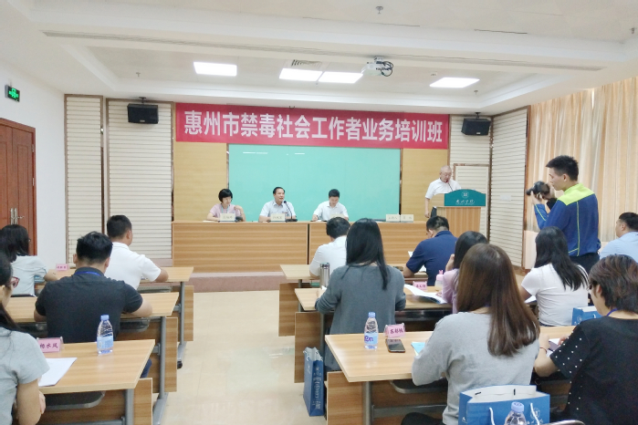 本网讯 9月23日上午,惠州市禁毒社会工作者业务培训班在我校开班。副校长许玩宏、市禁毒办副主任程吉胜出席开班仪式并讲话,继续教育学院、政法学院负责人及培训班90名学员参加开班仪式。开班仪式由政法学院负责人主持。
