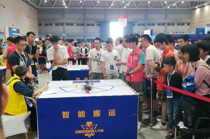 本网讯 10月16日-17日,第九届中国教育机器人大赛总决赛在佛山市潭洲国际会展中心举行。我校电子信息与电气工程学院派出两支学生队伍参加了智能搬运组的比赛,最终获得一等奖1项、二等奖1项的好成绩!