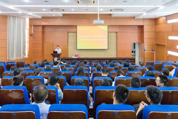 本网讯 10月24日下午,我校2018-2019学年新进人员入职培训班开班仪式和首场培训活动在文城视频会议厅举行。副校长郑文出席活动并讲话,80余名新进人员参加了培训。