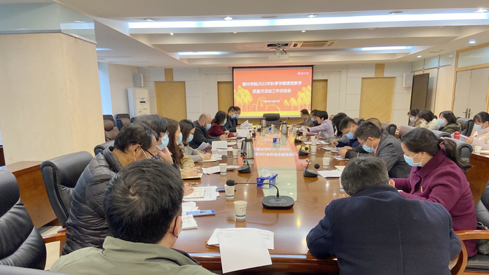 本网讯 12月13日下午,我校在行政楼202会议室举行2022年秋季学期课堂教学质量月工作总结会暨期末教学工作会议。副校长郑文,二级学院教学副院长,教务处、教师发展中心、网络与信息中心负责人以及教务处副科级以上人员参加会议。会议由教务处负责人主持。