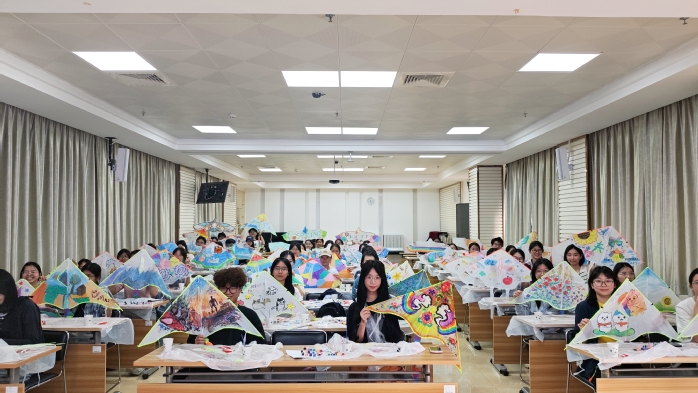 继续教育学院培训室内,空白风筝与缤纷颜料整齐铺展,参与者们或伏案细描,或挥洒涂鸦,以“春日花草”与“情绪涂鸦”为主题,将内心的喜怒哀乐化作笔下的色彩。有的同学用明快的向日葵表达对阳光的向往,有的则以抽象的线条勾勒出近日的心绪起伏。完成创作后,大家纷纷将独一无二的风筝送上蓝天,一时间,广场上空彩鸢翩跹,与春日的暖阳交相辉映。