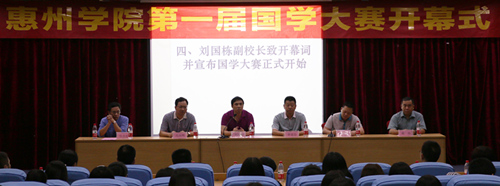 本网讯 5月13日下午,第一届国学大赛开幕式在图书馆报告厅隆重举行。此次大赛由惠州学院教务处、学生处、团委主办,中文系承办。刘国栋副校长、教务处负责人、中文系党政班子以及大赛指导老师出席了开幕式。