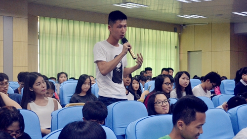 黄伟烈总经理主要从新时代的双创号角、创业规律、创新方法三个方面来阐述自己对当下大学生创新创业问题的思考。他认为,在当下的环境下,“创客空间”、“孵化器”、“加速器”、“天使基金”等因素为大学生创业提供了很多有利条件。他表示,大学生毕业后创业的黄金时期是在5年内,而究竟是大学生毕业后直接去创业还是先工作一段时间后再行创业,都是各有利弊的。