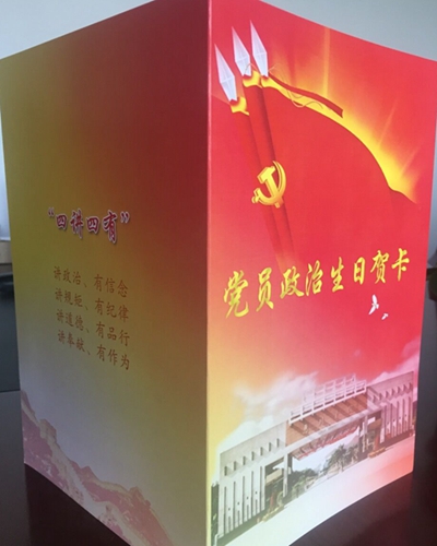 活动中,每一位毕业生党员都收到了一份特殊的生日礼物——一张由美术系党总支设计的印有中国共产党党旗、党徽、入党誓词和党组织寄语的“政治生日贺卡”。11名毕业生党员在鲜艳的党旗下,重温入党誓词,分享生日感悟,度过了了一个难忘的“生日”。系总支书记许秋娟向党员们寄语,期望党员们牢记自己的政治生日,牢记党员责任,做一名合格的中国共产党党员。