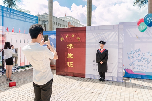 音乐厅场馆外,“毕业嘉年华”活动为毕业生们准备了“时光囊”。毕业生们写下未来自己5年的愿望和寄语,并相约于在5年后取回。以学校标志性建筑物如校门、旭日大楼和图书馆等情景再现的“时光长廊”和留言墙,让毕业生们再次回忆起大学四年的学习生活。音乐厅门前广场上彭永宏校长手书的“恭则不悔,宽则得众,信则人任焉,敏则有功,惠则足以使人”赫然入目,嘱咐毕业们走好人生每一步,前程似锦。