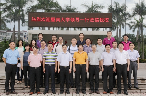 刘国栋代表我校对宋副校长一行的到访表示真切的欢迎。双方领导愉快地回顾了以往多年的合作历程,特别是长期以来暨南大学在人才培养、科学研究、办学能力提升等方面给予我校的大力支持。刘副校长重点介绍了近段时间以来,学校在制订“十三五”规划、推进与惠州市的省市共建和参与普通本科高校转型试点遴选等工作的开展情况,以及我校在校政、校企合作方面的情况与经验。