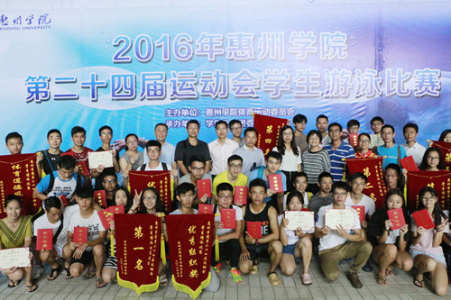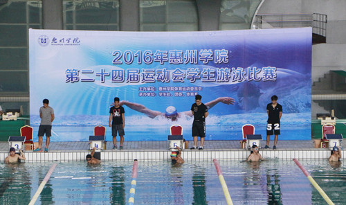 本次比赛由惠州学院体育运动委员会主办,学生处、团委、体育系共同承办,学生以系为单位参赛。比赛分为男、女两组,比赛项目有50米蛙泳、100米蛙泳,50米自由泳、100米自由泳,6×50M自由泳接力。经过激烈角逐,获得前八名的系部分别为:经济管理系、电子科学系、生命科学系、计算机科学系、建筑与土木工程系、中文系、化学工程系、旅游系。按相关计分规则,本次比赛成绩将计入2016年学校第二十四届运动会各代表团总分。