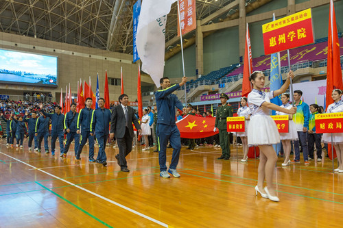 本网讯 11月9日上午,惠州市第五届运动会在惠州江北体育馆正式开幕,我校教工代表队在刘国栋副校长的带领下参加了此次开幕式。参加本次运动会的运动健儿们都精神饱满、充满活力。