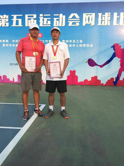 本网讯 11月5——6日,惠州市第五届运动会网球比赛在惠州奥林匹克体育中心网球场圆满落幕。蒋新国、路伟尚两位老师一路过关斩将挺进决赛,完胜对手获得市直机关组网球男子双打冠军,这是我校参加惠州市第五届运动会获得首枚金牌。