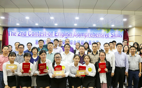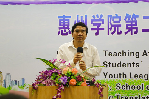 本网讯 11月15日晚,由校教务处、学生处和团委主办,外国语学院承办,惠州市翻译工作者协会协办的惠州学院第二届英语综合技能大赛在图书馆报告厅举行。刘国栋副校长、教务处曹建忠处长、学生处谭润志处长、团委赖昭华副书记、惠州市翻译工作者协会会长张映霞女士、执行会长麦寒涛先生以及各二级学院分管学科竞赛工作副院长等出席了本次比赛。