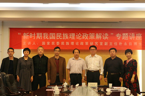 本网讯12月13日下午,国家民委民族理论政策研究室副主任朴永日博士应邀到我校作题为“新时期我国民族理论政策解读”的专题讲座。惠州市委统战部副部长、市民宗局局长吴少忠,市民宗局副局长贾智、李关明副调研员一行六人,学校各二级学院党总支书记、副书记、辅导员,马克思主义学院和政法学院相关专业教师代表,学校各民主党派主委、副主委以及组织部、统战部、团委、学生处、保卫处等相关职能部门负责人近60人在行政楼202会议室聆听了本次讲座。学校党委副书记赵日兴主持会议。