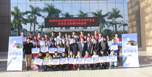 据悉,“真维斯大学生助学基金”自2005年设立以来,共对我校525名贫困大学生进行了资助,总金额达120.4万元,在帮助我校部分贫困大学生顺利完成学业,传播自强不息、善行天下的校园正能量等方面起到了积极的作用。