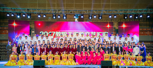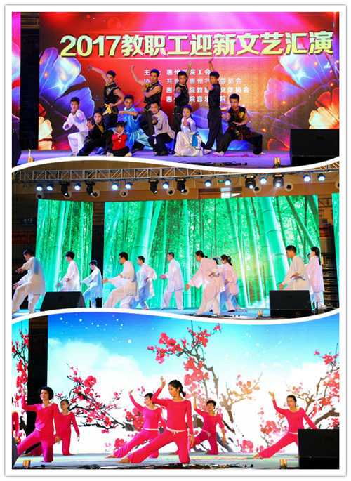 本网讯 12月30日下午,由惠州学院工会主办,共青团惠州学院委员会、学校教职工文体协会、音乐学院共同承办的惠州学院2017年教职工迎新文艺汇演在金山湖体育馆隆重举行,在惠全体校领导与广大师生欢聚一堂,共同观看了此次文艺汇演,共同迎接新年的到来。