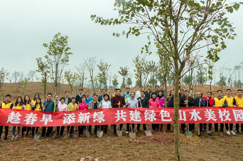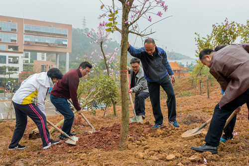 趁春早,添新绿,花香果硕美校园。建设绿色化现代山水校园,需要全校师生共同行动,需要年复一年不懈努力。正如五代十国词人欧阳炯《春光好》里的词句所云:“天初暖,日初长,好春光。万汇此时皆得意,竞芬芳。”有了今年辛勤的付出,想必明年惠院的春天会树更茂,花更艳吧?