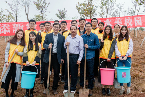 本网讯 水光潋滟晴方好,山色空蒙雨亦奇。在一年一度的植树节到来之际,3月11日上午,我校在丰湖园小山坡开展了“趁春早添新绿共建绿色山水美校园”植树活动。校长彭永宏,校党委副书记赵日兴,校党委副书记兼纪委书记李韶春,副校长刘国栋、罗川山等校领导与部分职能部门和二级学院负责人、青年志愿者、部分师生代表一起参加了活动。