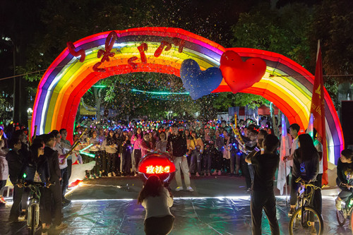 下午5点多,700多名报名参加活动的同学陆续来到活动现场排队签到,有序领取荧光夜跑的装备妆扮自己。在政法学院党总支负责人郑重地将“雷锋活动月”的旗帜授予学生代表后,随着主持人一声令下,近千人在“春雷动,与锋行,千人跑,共传善” 的旗帜引领下有序地从学校中苑起跑,环校一周,炫彩的荧光装备将夜跑渲染得五彩斑斓。在活动过程中,不断地有同学被吸引并加入到队伍中,大家用行动共同倡议学习雷锋精神,践行志愿服务的理念。随着更多人的加入,队伍也变得越来越壮观,涌动的人群在校园里跑出一道道流光溢彩的风景线。