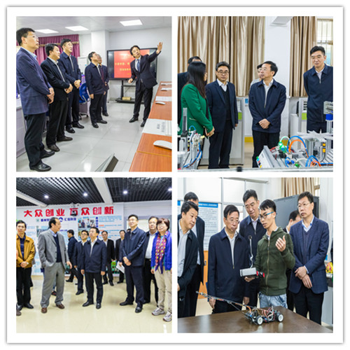 范中杰常委一行首先实地考察了我校的第二教学区和部分二级学院。在第二校区,他详细询问了校区建设的基本情况、存在问题和现实困难,提出了许多建设性的意见和建议;在相关二级学院负责人的带领下,他仔细参观了我校的信息技术创新中心、大数据协同创新中心、智能检测与自动化装置实验室、电子信息关键技术实验室、电子商务与科技检索实验室、电子功能材料与器件实验室,深入了解我校创新中心和实验室的建设、管理和运行情况,对我校创新中心及各实验室的科研成果表示充分的肯定。