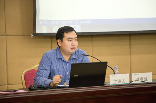 在主持人对主讲嘉宾做了简要介绍后,培训正式开始。王豪菁老师首先作了题为“高校官微运营的思维与技巧”的讲座。他首先对广东外语外贸大学的官微进行了简要介绍,并结合广外官微的运营实例分别从“新媒体发展趋势与价值意义”、“高校官方微信运营理念”、“ 高校官方微信运营技巧”、“ 高校官方微信运营管理”、“ 其他新媒体平台建设”等五个方面进行了讲解。他谈到,当前新媒体具有形态多样、覆盖面广和深度融入生活的特点,而高校新媒体能够起到很好的对外联络、对内宣传以及舆情引导的作用;高校官微运营理念应注重用户思维、数据思维、商业思维、迭代思维、平台思维、全局思维和底线思维等七大思维,既满足广大师生需求又符合大众审美,既找准自我定位又做好长期布局,做到有所为有所不为;要在做好选题和内容策划的前提下思考如何吸引更多粉丝及提高微信影响力排名的问题,在注重品质的同时提高学校的品味和内涵;要定期召开工作例会和制定规范制度,设立稿酬、评优评先等激励机制;要研究不同平台的差异性传播特点,结合时代和工作需要,发现和用好潜力新平台。
