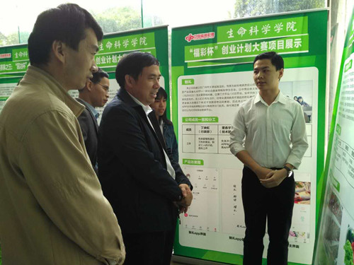 本网讯 为进一步推动大学生创新创业工作,激发大学生的创新创业热情,提升大学生实践能力和创新意识,3月29日下午,生命科学学院分别在旭日楼一楼大厅和图书馆报告厅举行首届“福彩杯”创新创业大赛成果展暨总结表彰大会。学校副校长刘国栋,教务处处长曹建忠,生命科学学院党政领导及师生代表参加了相关活动。