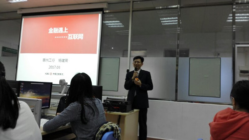 3月30日上午,中国工商银行惠州分行副行长、惠州学院客座副教授杨建荣先生在经管学院实践教学中心为15级财务管理2个班作了题为“金融遇上--互联网”的专题授课,开讲“行长每月一讲”第一讲。他从互联网对人们生活方式和商业模式的改变、金融和互联网的有机融合趋势、线上线下一体化带来银行转型发展等方面进行了详细阐述,引导学生要转变思维,适应互联网时代,充分认识加快银行互联网金融进程的时代使命,启发学生要有创新视野,进而理解当下的银行金融服务。他还通过课堂调查的方式让学生具体了解人们现在所熟悉的"微信支付"和"支付宝支付"与互联网密不可分,强调互联网改变了人们的支付习惯,使金融业的发展趋向于脱媒化、离柜化和智能化,并催生了“客户金融行为的变化导致各个行业纷纷将目光转向互联网金融领域”的新的金融格局。最后,杨行长简要介绍了工商银行“e-ICBC发展战略、重点产品体系、未来发展的方向”三大部分的线上线下一体化发展进程,指出银行不再是客户要去的地方,而是实现客户需求的方式。