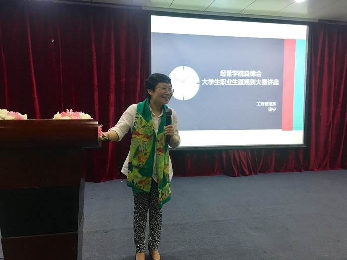 本网讯 4月8日,经济管理学院在图书馆报告厅举办职业生涯规划专题讲座,该院工商管理系主任徐宁副教授应邀主讲。