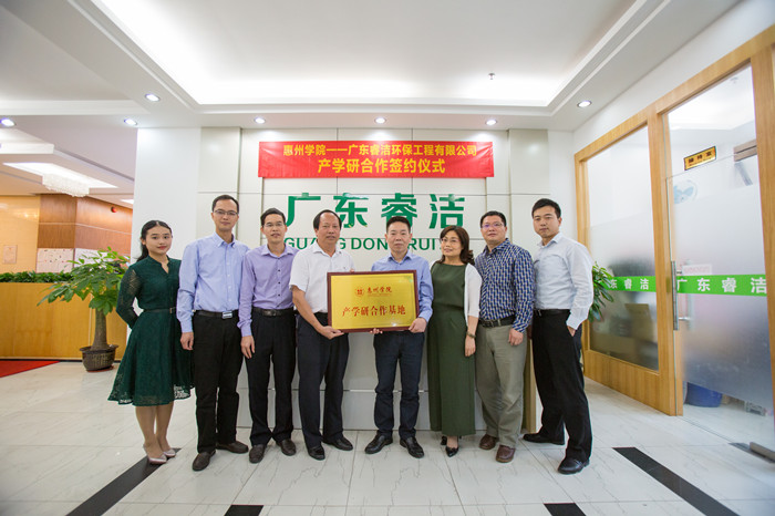 本网讯 4月24日上午,党委副书记赵日兴带队赴广东睿洁环保工程有限公司(惠州)参加产学研合作基地协议签订暨授牌仪式。广东睿洁环保工程有限公司董事长何惠国、总经理陈盛凯及业务代表,我校化学与材料工程学院、生命科学学院负责人及教师代表出席了仪式。