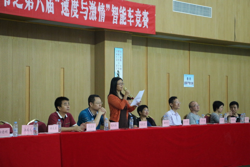 闵国新副院长致开幕词。他表示,学校智能车竞赛为电子学院学生提供了一个学习交流、科技创新的竞争平台,使学院在全国大学生智能车竞赛中取得长足的进步;希望本次比赛一要切实遵守比赛秩序,二要坚持“公开、公正、公平”的原则,三要在比赛中不断总结、不断提高,赛出水平,赛出风采!