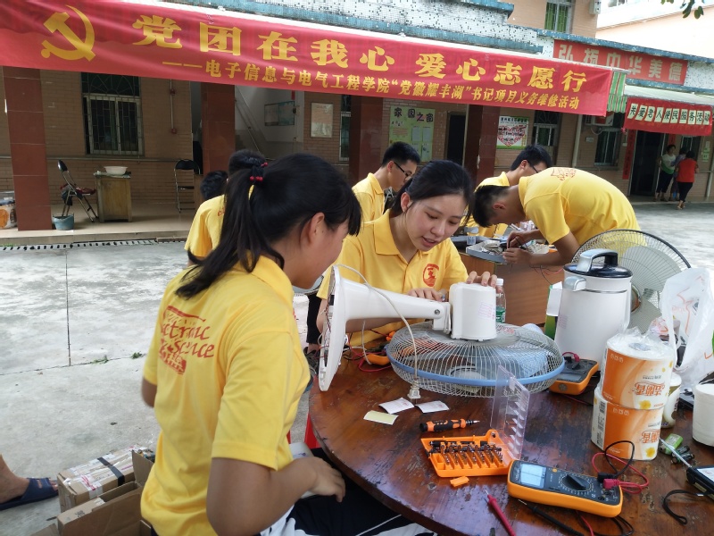 据悉,这是电子学院到三栋敬老院志愿服务的第六个年头,每年雷锋活动月志愿者们都会来这里陪伴老人。同学们在志愿服务中不仅履行了党员、团员的责任与义务,更体会到了奉献的价值和为人民服务的快乐。电子学院将特色义务维修活动带入敬老院活动,不仅是该院“党徽耀丰湖”书记项目的重要内容之一,也是该院重点思想政治教育专项“‘爱心温暖传千里’义务维修进敬老院”的具体体现。