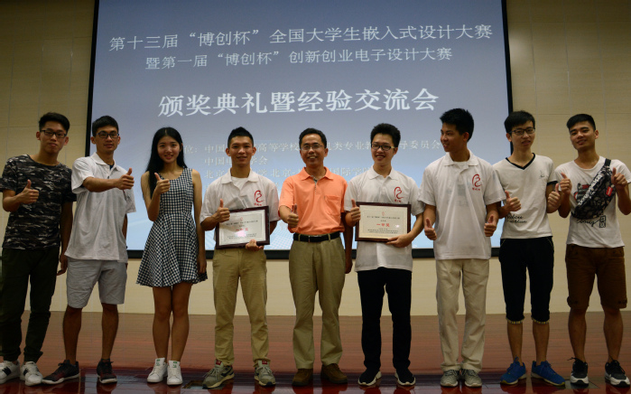 本网讯 7月14至16日,第十三届“博创杯”全国大学生嵌入式设计大赛暨第一届“博创杯”创新创业电子设计大赛全国总决赛在北京工业大学奥林匹克体育馆隆重举行。我校信息科学技术学院派出两支队伍参赛,并荣获两个一等奖。
