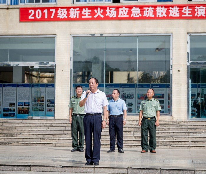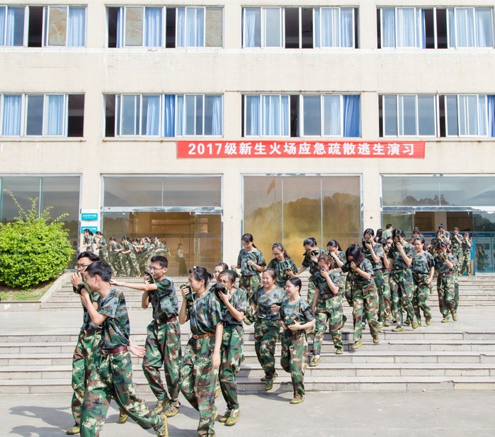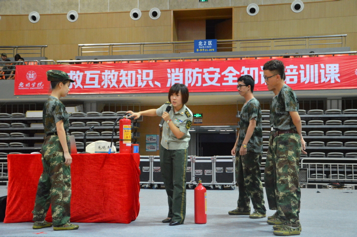 本网讯 为贯彻《教育部关于加强学生军事训练管理工作的通知》精神,丰富军训科目内容,普及消防安全知识,增强2017级新生的消防安全防范意识,进一步提高学生对火灾等突发事件的安全应对能力,9月21日-23日,我校在金山湖体育馆开展了2017级新生消防安全知识讲座和消防演练,对新生进行消防安全的教育培训。