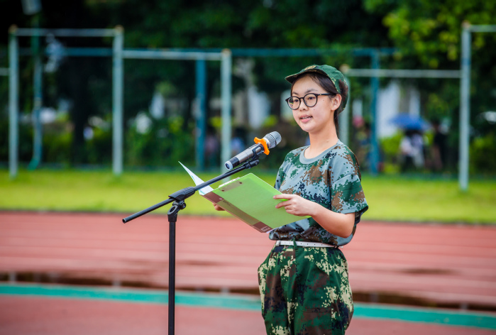 政法学院曾蓝蓝同学代表2017级新生在国旗下发言。她表示,将与所有新生一起,把个人的理想与祖国的命运联系在一起,牢记自己的使命,树立远大理想,在新的人生起点上不断追求知识的更新和综合素质的提高,以高昂的士气和高涨的热情,不负青春不负己,书写大学的美好篇章,用青春铸就中国梦!
