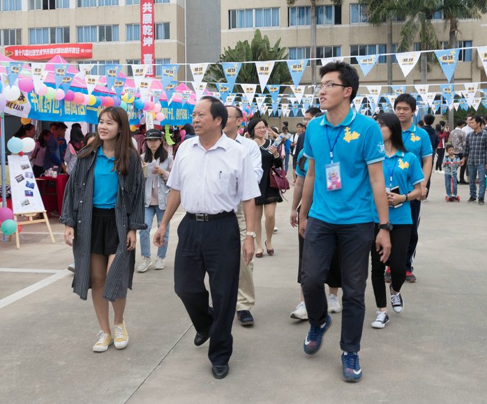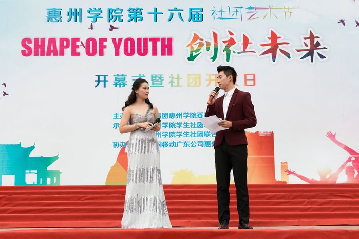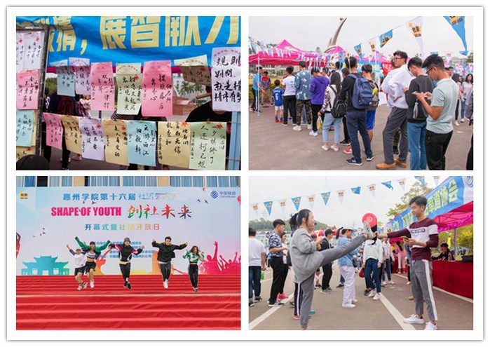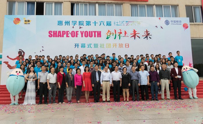 本网讯 11月4日下午,校团委主办、学生社团联合会承办的第十六届社团艺术节开幕式暨社团开放日在旭日广场隆重举办。校党委副书记赵日兴,中国移动惠州分公司李志庆副总经理、校团委负责人,各二级学院党总支书记、副书记和全体辅导员应邀出席本届社团艺术节开幕式,与近2000名各社团成员共享这精彩时刻。