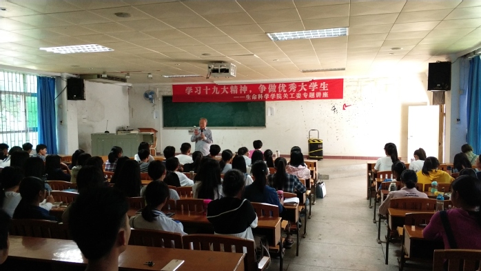 据悉,此次讲座是生命科学学院新生入学教育系列活动之一,旨在引领青年大学生深入学习十九大报告,树立正确的人生观和价值观,明确自身的责任和使命,坚定朝着习近平总书记对青年的指引方向砥砺前行。