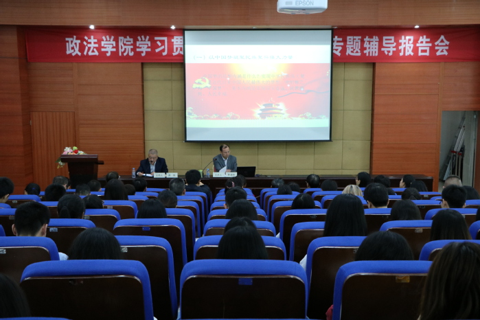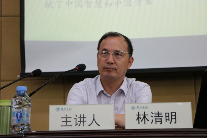 该院院长林清明以《领会把握习近平新时代中国特色社会主义思想——学习领会党的十九大精神》为题作了专题辅导报告,这也是政法学院开展十九大精神学习系列报告会的第一场报告。(插入图2)