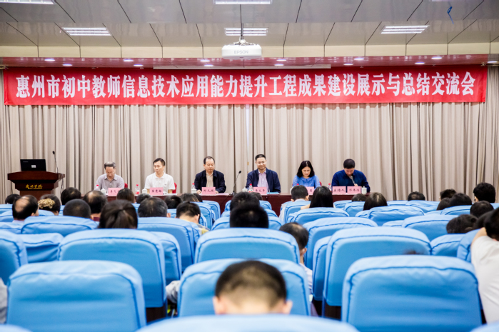 本网讯 11月18日上午,惠州市初中教师信息技术应用能力提升工程校本研修成果建设展示与总结交流会在我校图书馆学术报告厅举行。惠州市教育局副局长邓凡用、教师继续教育科科长谢茵,广东第二师范学院网络教育学院副院长黄义平,惠州学院继续教育学院副院长黄鹰雄,惠州市各县区教育局师训办负责人、各初中学校副校长及教师代表参加了会议。