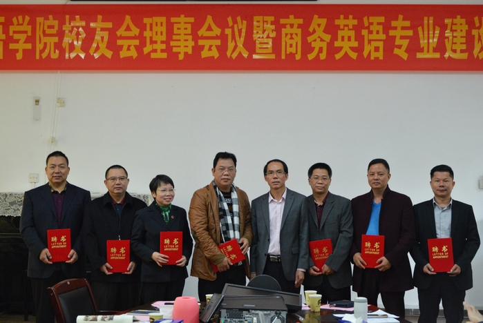 会上,外国语学院院长曾方本向被聘为首届商务英语专业建设专家委员会的九名校友专家颁发了聘书,向校友们介绍了外国语学院的办学情况。他表示,商务英语专业是适应社会经济发展的需要和传统英语专业本身发展的需要于去年新开办的,为办好商务英语专业,外国语学院大力实施“英语+”的培养模式,充分发挥校企协同育人和广大校友的力量。希望受聘为商务英语专业建设委员会专家的企业、行业校友精英在人才培养目标、课程设计、实践平台建设等方面积极献言献策,一起共同办好商务英语专业。