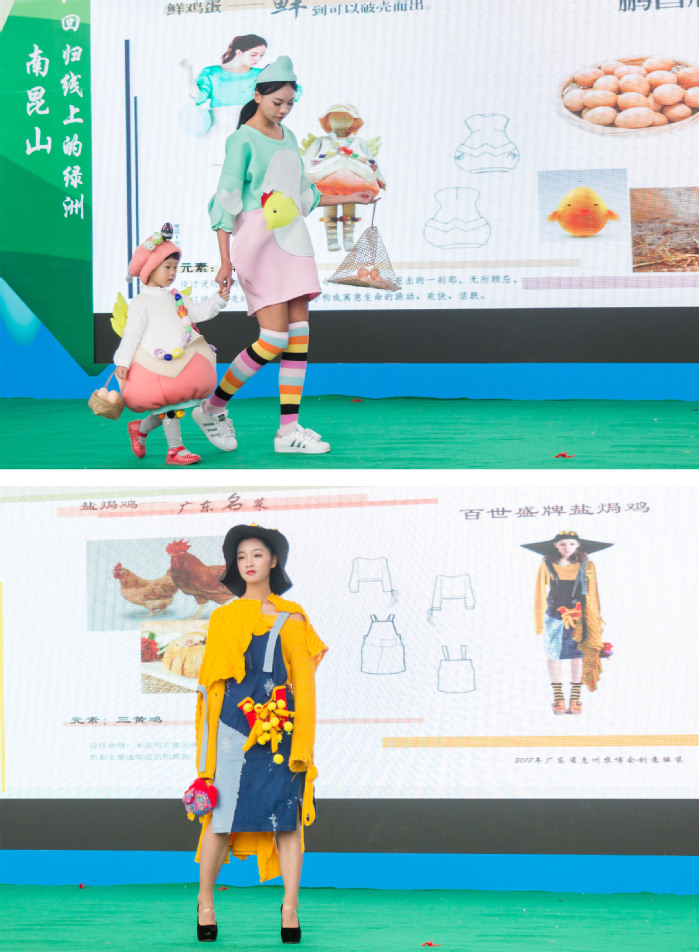惠州现代农业博览会自2008年起已成功举办四届,成为粤东、珠三角、粤港澳地区颇具影响力的区域性农业盛会和经贸平台。第五届农博会是惠州市政府主办的大型活动之一,是全市人民的一大盛事。市委、市政府对本届农博会高度重视,多次召开协调会议加以推进,并决定与惠州学院旭日广东服装学院联合举办一场农场品为主题的创意服装秀。旭日广东服装学院师生根据本届农博会网络投票评选出的海胆、鸡蛋、豆腐花、冰鲜鸽、冻鸭、杨桃等“2017我最喜爱的惠州品牌农产品”20强农产品,利用产品生动的造型大胆构思,将产品与服装巧妙地结合在一起进行服装设计与制作,并由该院表演班的同学在农博会现场演绎展示别开生面的农产品创意服装,通过真人模特的演绎,强调了人与自然界密不可分的关系以及“绿色农业、生态惠州”的主题。