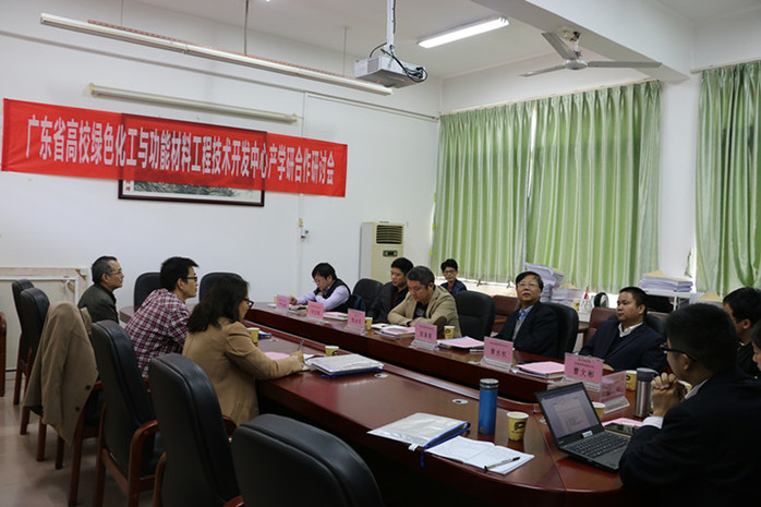 本网讯 11月23日上午,广东省高校绿色化工与功能材料工程技术开发中心产学研合作研讨会在我校化工学院会议室举办。中山大学惠州研究院晏金灿博士,惠州市华阳光学技术有限公司副总经理陈章荣、研发部经理刘文砥,力王新材料(惠州)有限公司总经理张彦兵,广东石油产品质量监督检验中心闻环高级工程师、博罗康佳精密科技有限公司黄水权研发经理、惠州清水湾生物材料有限公司曹文彬博士,惠州市华瑞光源科技有限公司严冰波主任工程师等惠州市化工、电子、材料类企业等相关的科研机构、企业代表出席了会议。化学与材料工程学院副院长李浩、封科军,化学与材料工程学院工程技术开发中心主任童义平教授、各系主任、教授及博士教师代表参加了研讨会。