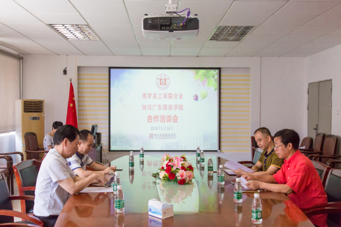 本网讯 5月16日,博罗县工商业联合会党组书记张思耿和杨主席一行到访我校旭日广东服装学院,就加强校政行企合作事宜进行洽谈。旭日广东服装学院执行院长刘小红、党总支书记曾裕林接待了来宾一行。