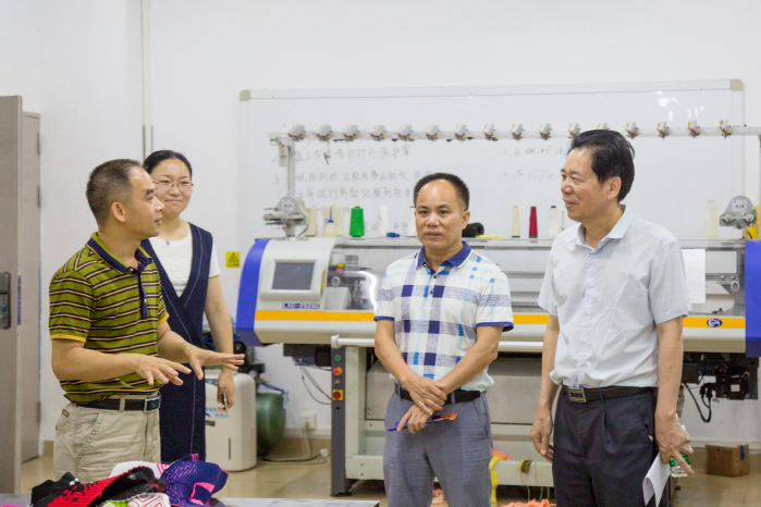 会后,在曾裕林等的陪同下,来宾一行参观了旭日广东服装学院校企合作办学成果展和电脑横机工作室、影像工作室等场所。
