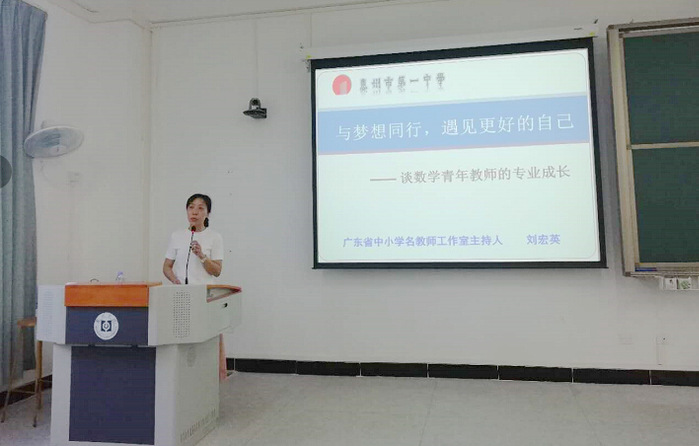 本网讯 5月31日上午,数学与大数据学院特邀惠州市惠州一中高中部刘宏英老师为2015级数学与应用数学专业学生作了一场题为“与梦想同行,遇见更好的自己——谈数学青年教师的专业成长”的专题讲座。本次活动由教务处主办、数学与大数据学院承办。讲座由数学与大数据学院副院长陈益智主持。