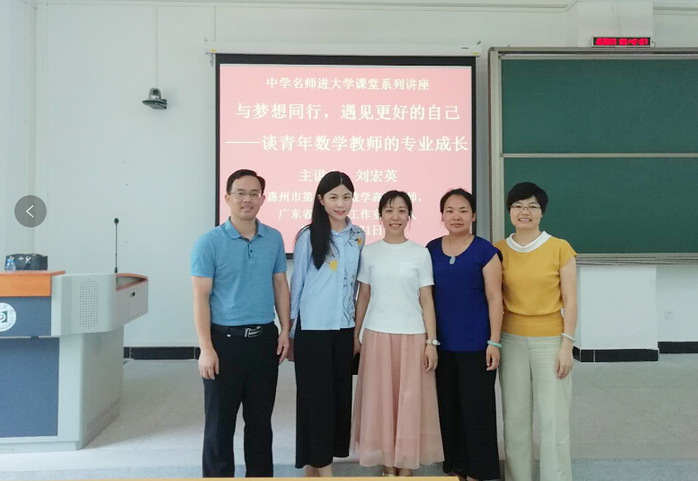 据悉,刘宏英老师是中学数学高级教师,硕士研究生,广东省名教师工作室主持人。致力于高考试题和课堂教学研究近20年,成效显著。曾获得全国课改优秀实验员称号,担任教育部“一师一优课”广东省评委,惠州市教师培训辅导专家、惠州市新任教师培训指导老师、惠州市高三核心备课组组长。被评为数学竞赛优秀教练员、惠州市优秀教研工作者、惠州市教坛新秀、优秀班主任等。多篇论文获得省、市一等奖,多次获得教学比赛一等奖,参加多项省市课题的研究。培养多名学生考入全国名校,指导多名青年教师获得优质课省、市一等奖。